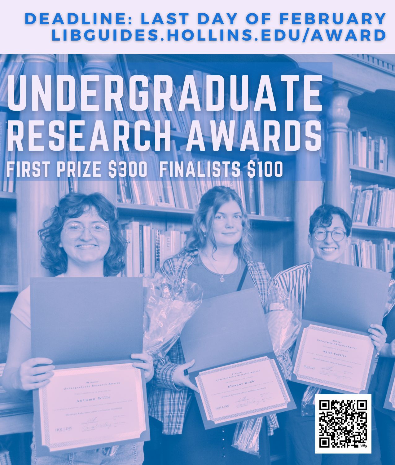 Apply for the library’s Undergraduate Research Awards today: https://libguides.hollins.edu/award