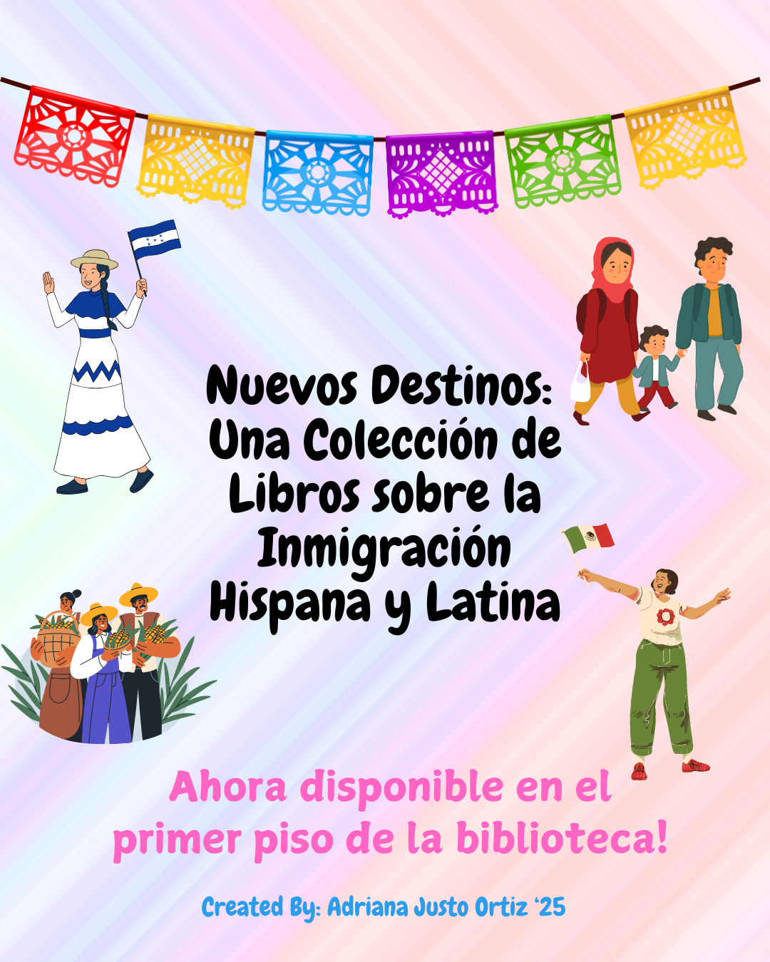 Additionally, explore the online exhibit at https://libguides.hollins.edu/NewDestinations , where you’ll find digital content like a website with more sources for Hispanic and Latino immigrants, podcast, TEDx Talks Video, and Instagram book recommendations, all centered around the Hispanic and Latino community. Enjoy your exploration and happy reading!