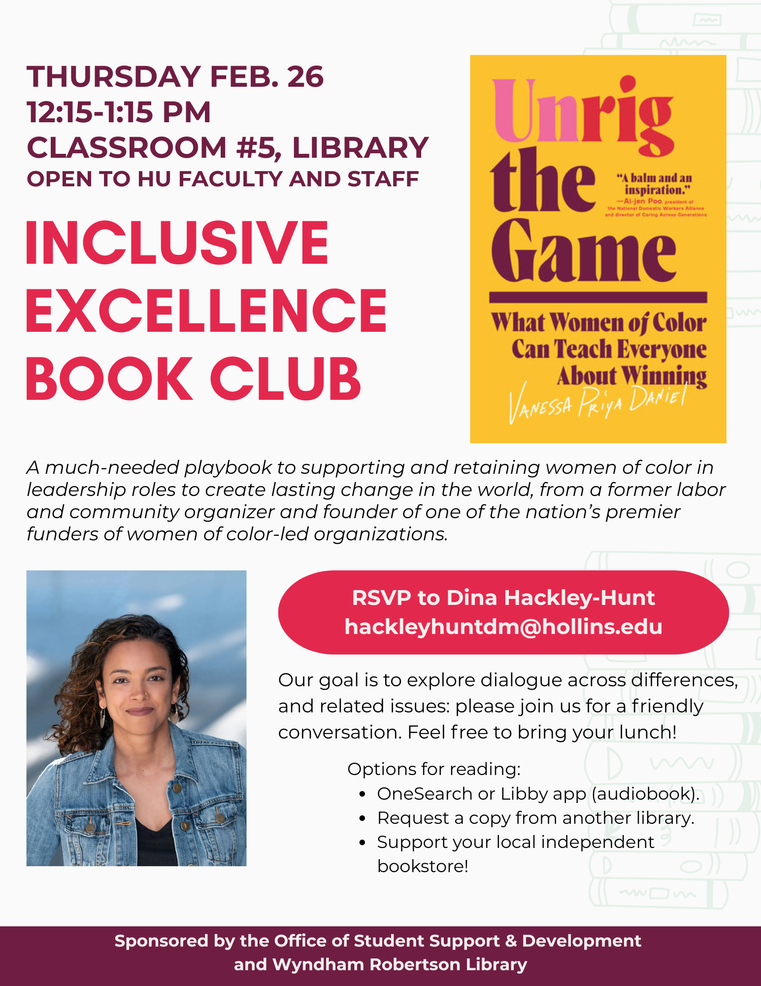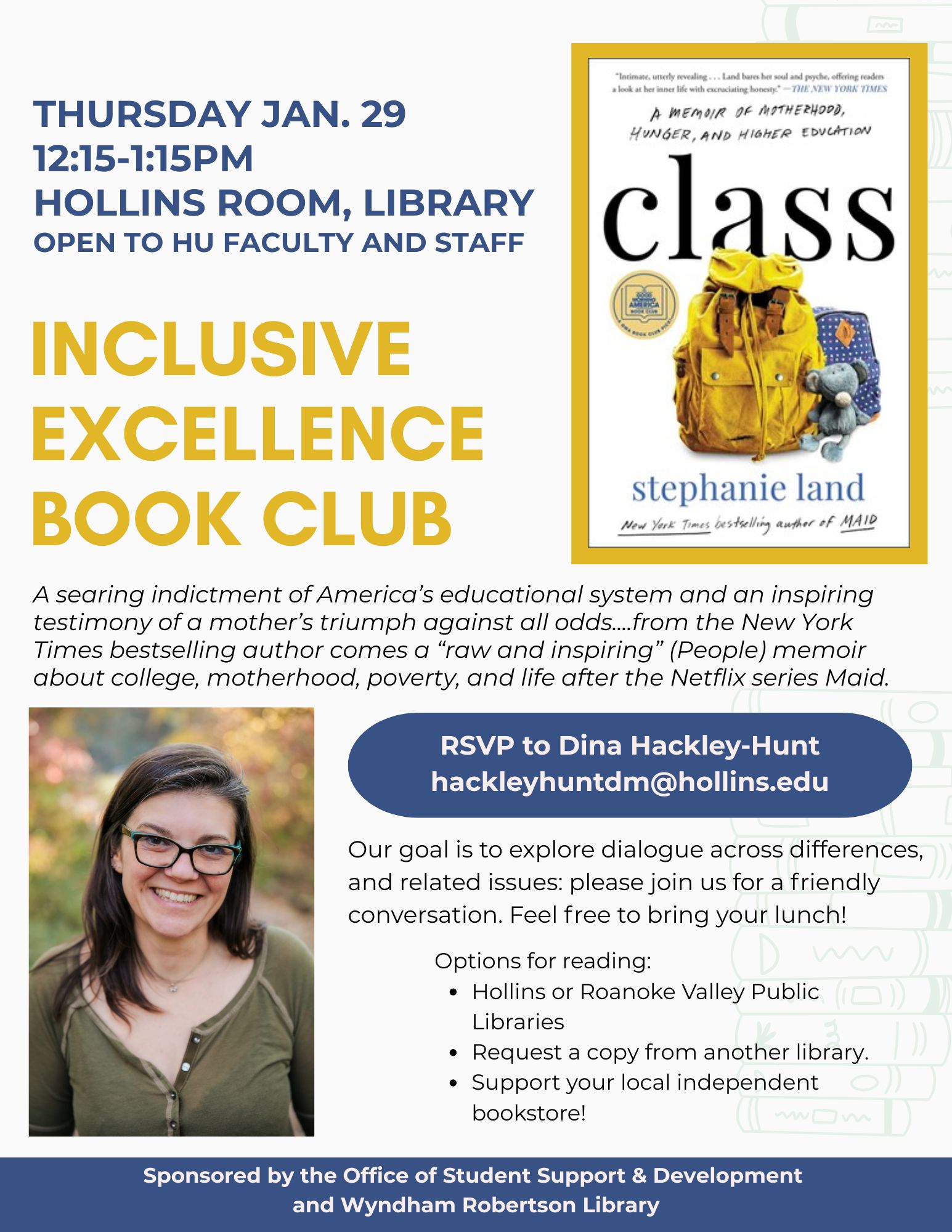 - RSVP to Dina Hackley-Hunt: hackleyhuntdm@hollins.edu .